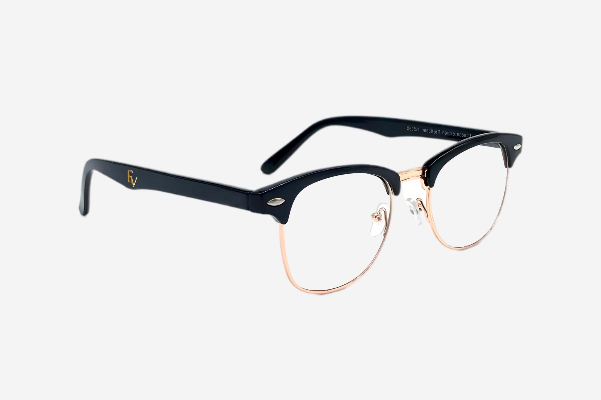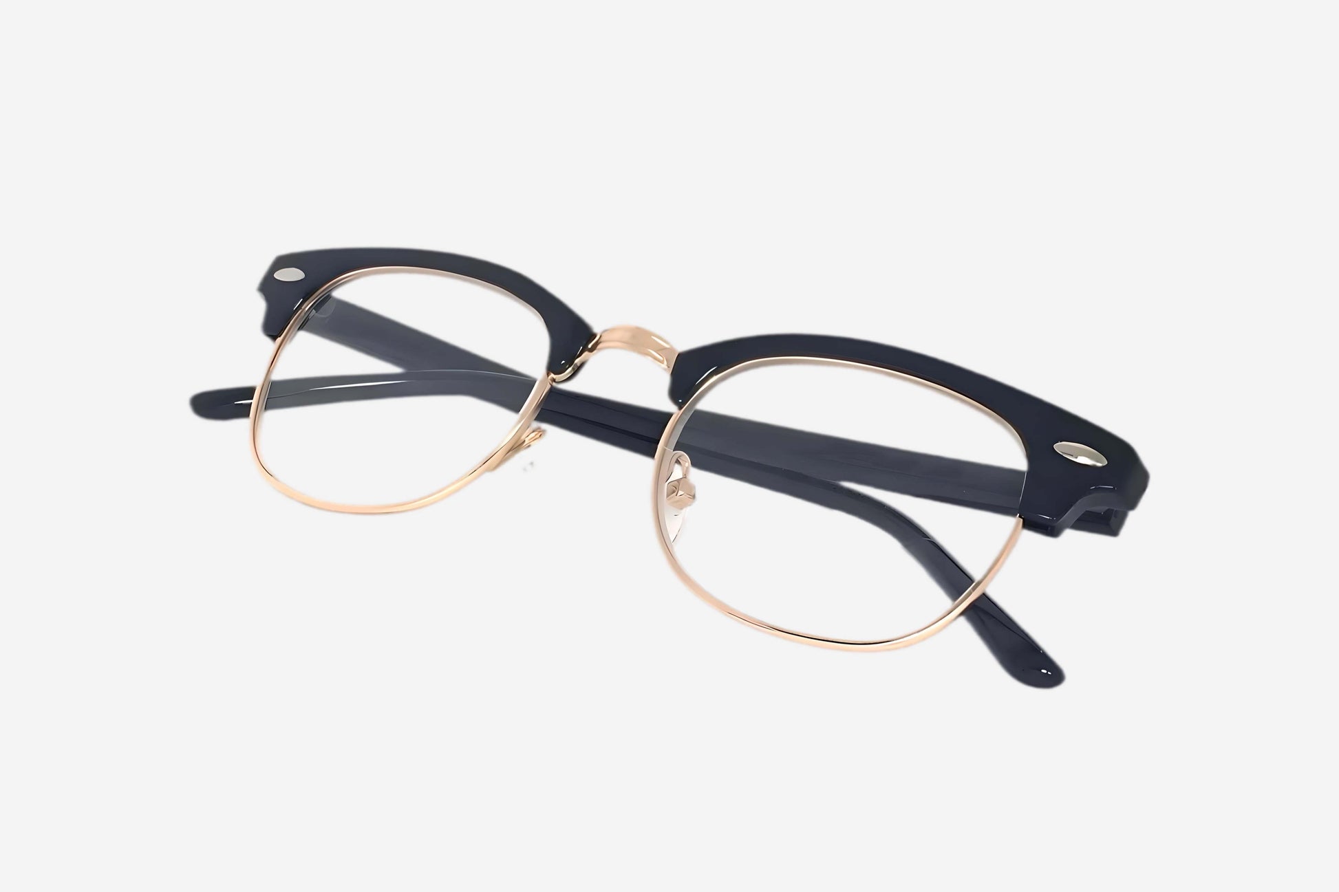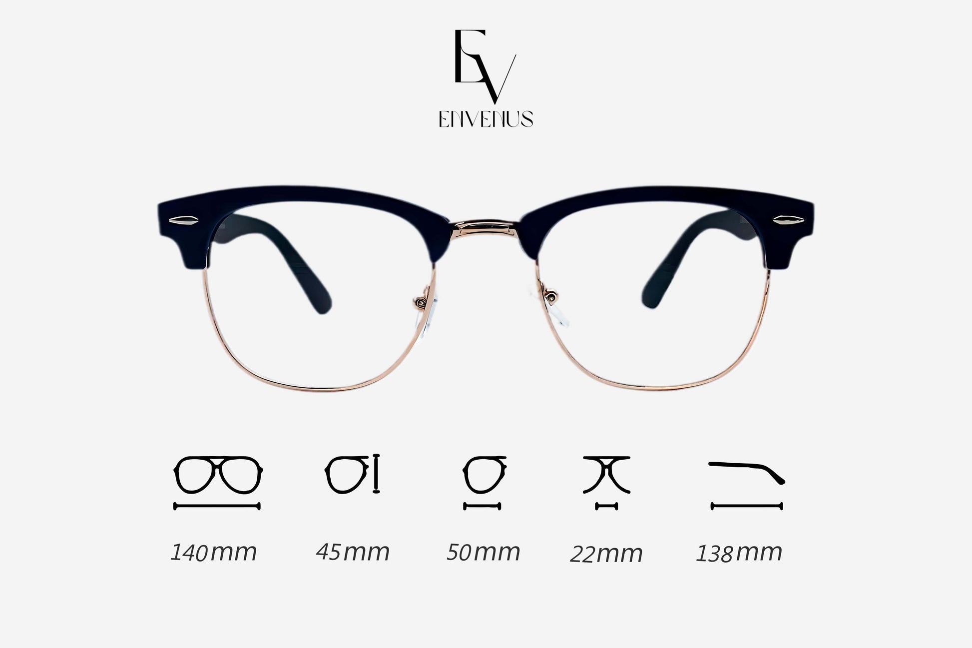 El armazón superior es de acetato negro, resistente pero ligero, mientras que la parte inferior del marco es metálica con un acabado en dorado, lo que le da un toque de distinción y sofisticación.